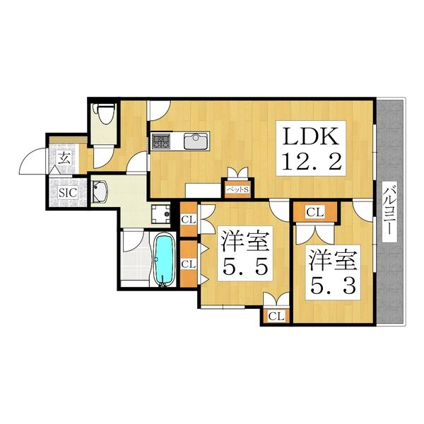 ■58㎡超えのゆとりある2LDK
