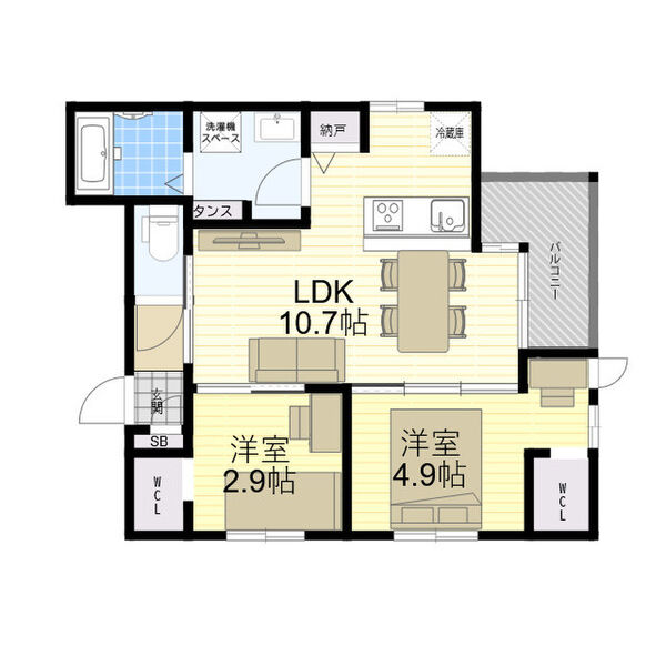 コンパクトながらも、しっかり2部屋確保できる間取りで、