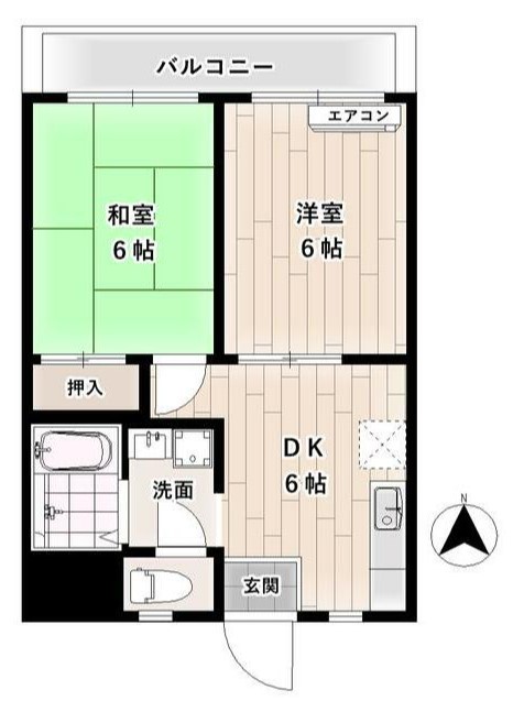 専有面積33.12㎡の2DKで